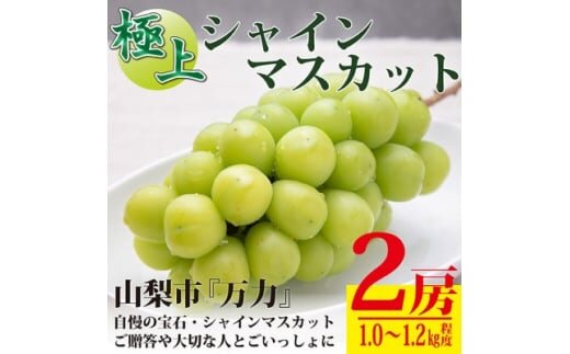 <2026年発送 先行受付>生産者直送『万力』極上シャインマスカット2房 計1kg~1.2kg程度【1137178】