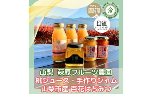 山梨 はぎふる 桃ジュース3本・手作りジャム2本・純粋はちみつ1本 (化粧箱入)【1482158】