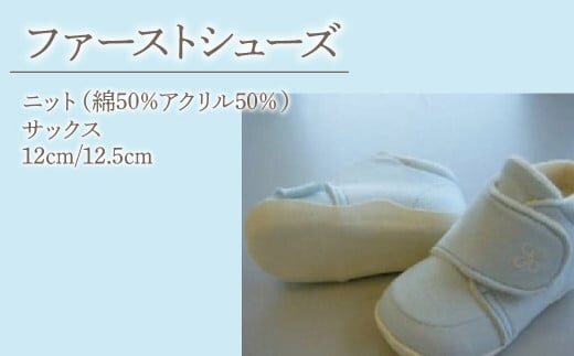 ファーストシューズ(ニット) 【カラー】サックス 【サイズ】12.0 or 12.5(どちらかをお選びください) 【素材】ニット生地(綿50%アクリル50%) 【申込】通年 【提供】小林メリヤス株式会社 ※ご希望のサイズを「ご不在日およびその他の連絡事項」の欄に必ずご入力ください。 |