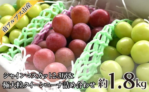 <2025年発送分先行予約>シャインマスカット(2-3房)&極大粒クイーンニーナ詰め合わせ約1.8kg ALPAJ046