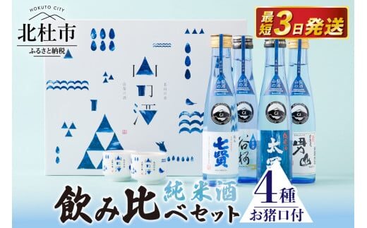 酒 純米酒 山の酒 山梨県産 飲み比べ セット 4本 180ml お猪口 2個 贈答 ギフト