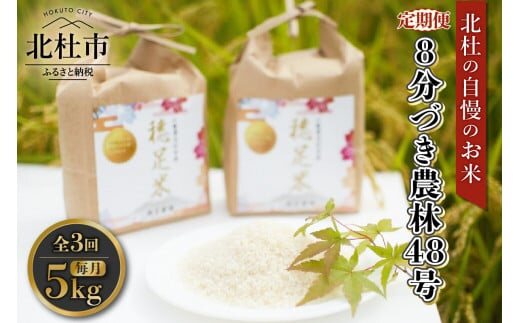 【令和7年度米3ヵ月定期便】8分づき農林48号 5kg×3回 米 【定期便】 3ヵ月定期便 計3回お届け 令和7年度米 農林48号 5kg 8分づき 自慢のお米 八ヶ岳 山梨県 北杜市 仕送りギフト