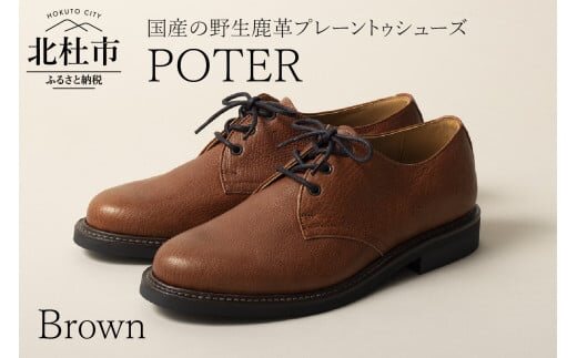POTER(北杜市産の野生鹿革プレーントゥシューズ)ブラウン(25.5cm)
