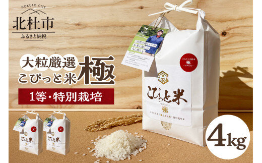 【令和7年度新米先行予約】【令和7年度米】こぴっと米【極】4kg 大粒厳選・1等特別栽培米 100% 米 精米 大粒 厳選 北杜市産 お米
