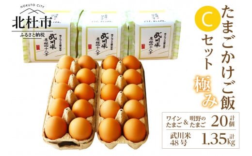 極み卵かけご飯Cセット(ワインたまご10個、明野のたまご10個、武川米48号450g×3袋)