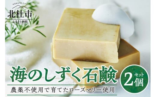 海のしずく石鹸 農薬不使用で育てたローズマリーの粉末を配合 2個入りセット