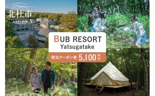 BUB RESORT Yatsugatake 宿泊クーポン券(5100円分) チケット 宿泊 クーポン券 5,100円分 宿泊券 「BUBRESORT Yatsugatake」 体験型宿泊施設 山梨県 北杜市 八ヶ岳 体験