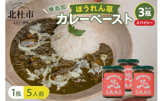 スパイシーほうれん草カレーペースト 3瓶セット カレーペースト 1瓶230g 5人前 スパイシー 3個 ほうれん草 カレー ペースト 無添加 こだわり 簡単 本格スパイスカレー 瓶詰 持ち運び アウトドア 仕送りギフト 山梨県 北杜市
