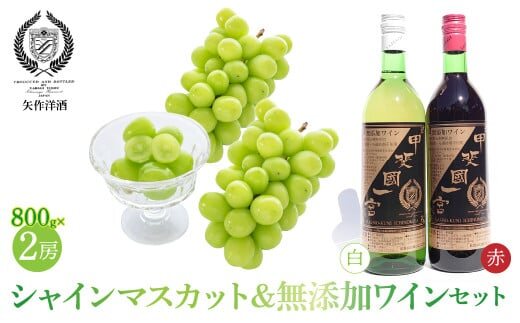 シャインマスカット葡萄と無添加ワインのセットA (シャインマスカット約800g×2房、赤ワイン1本、白ワイン1本) 014-011