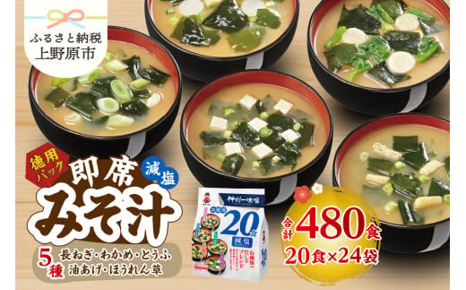 (WA55)神州一味噌 徳用パック 減塩タイプ 480食(20食×6袋×4)味噌汁 即席味噌汁 インスタント レトルト みそ汁 スープ 備蓄 非常食 保存食 簡単 便利 即席 発酵食品 朝食 ランチ 夜食 お弁当のお供に 防災 大容量 常温保存 ローリングストック 送料無料 山梨県 上野原市