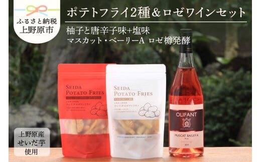 せいだ芋のポテトフライ2種&笹一酒造OLIFANT マスカット・ベーリ ーA《ロゼ》750mlセット ポテトフライ ポテトスナック ワイン ロゼ樽発酵 マスカット・ベーリーA 750ml OLIFANT 菓子 芋 せいだ芋 セット ギフト プレゼント お土産 フルーティー 食べ比べ 送料無料 山梨県 上野原市