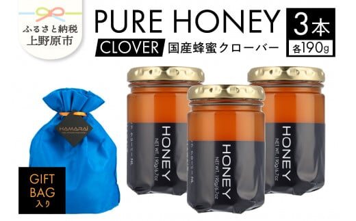 上野原市産 はちみつ ハチミツ 蜂蜜 天然 570g 190g×3本 クローバー マイルド 贈答 プレゼント ギフト 贈り物 山梨県 上野原市