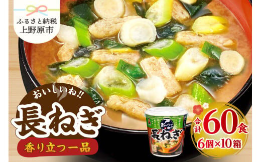 (WT60)神州一味噌 おいしいね!! 長ねぎ 60食(1食×6個×10箱) 味噌汁 カップ味噌汁 インスタント レトルト みそ汁 備蓄 非常食 保存食 簡単 便利 即席 発酵食品 朝食 ランチ 夜食 お弁当のお供に 防災 大容量 常温保存 ローリングストック 送料無料 山梨県 上野原市