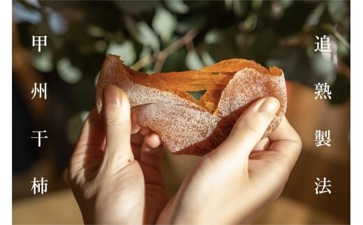 渋柿は甘柿よりも糖度が高く、甲州百目柿の大きさと食感は別格です。そんな甲州百目柿のポテンシャルを最大限に引き出すために、干すという工程よりも追熟させることにこだわり、失敗に失敗を重ね独自の製法にたどり着きました。是非これを機会に私たちの自慢の逸品をお楽しみください。