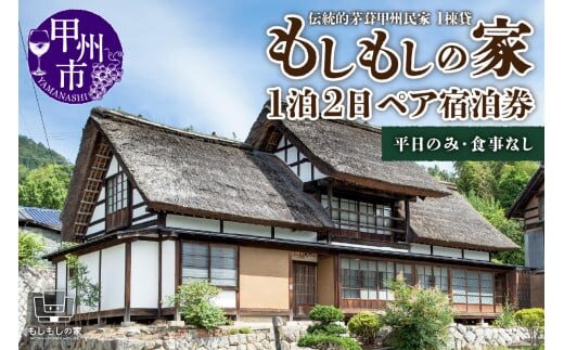 【古民家一棟貸】伝統的茅葺甲州民家「もしもしの家」1泊2日ペア宿泊券 G-1305