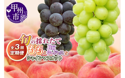 【定期便】旬の採れたて3回定期便(桃・BKシ―ドレス・シャインマスカット)【2026年発送】(HO)C9-412