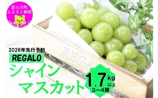 【2026年発送分 先行予約】頬張る幸福感 ~緑の宝石・シャインマスカット~ 1.7kg以上(3~4房) フルーツ 山梨県産 果物 シャイン マスカット ぶどう ブドウ 大粒 種なし 種無し 先行予約 富士川町