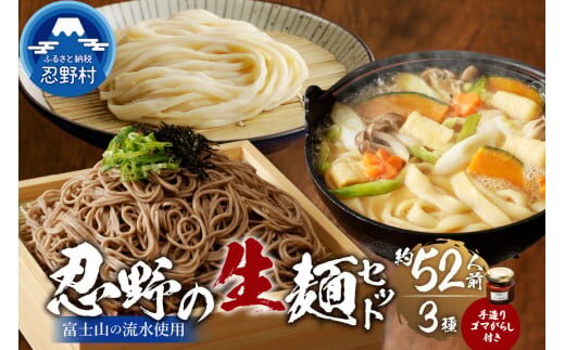 忍野の生麺セット 約52人前 ごまがらし 箱入り 茹で方説明書付き 麺類 お取り寄せ 冷凍保存可 おざらもおすすめ 忍野村 山梨県産 富士山の流水使用 プレゼント 贈り物 送料無料 ※沖縄県、離島不可うどん そば ほうとう セット 生麺 計20食分 箱入り 贈答 ごまがらし2瓶 忍野村 山梨県産 富士山の流水使用 送料無料 ※沖縄県、離島不可