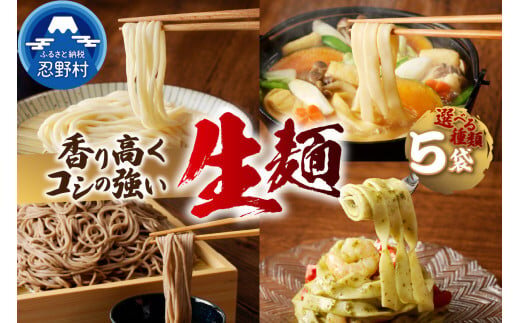 忍野の生麺(生そば、うどん、ほうとう、パスタ)選べる5袋※沖縄・離島へのお届け不可※着日指定送不可