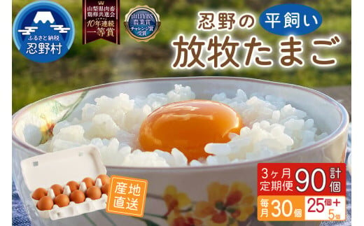 \【たまごの定期便】 極上の平飼い放牧たまご/ 3か月 卵 たまご 平飼い 放牧 30個 アニマルウェルフェア認証 一等賞 受賞 新鮮 安心 安全 コク 人気 TKG 朝食 夕食 夜食 卵かけごはん 産地直送 忍野村 山梨県産 送料無料※沖縄県、離島不可