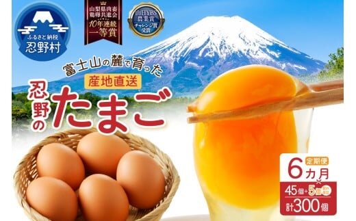 【6ヶ月定期便】富士山の麓で育った産地直送 ”忍野の卵”※卵45個+割れ保証5個 計300個
