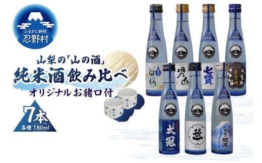 山の酒 純米酒 飲み比べセット 谷櫻 甲斐男山 七賢 太冠 春鶯囀 笹一 甲斐の開運 オリジナル お猪口 富士山の酒 酒蔵 八ヶ岳名水 プレゼント 贈り物 お取り寄せ 送料無料 山梨県 忍野村