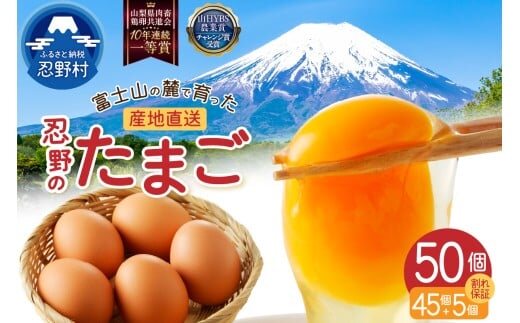 【2月配送分】富士山の麓で育った産地直送 ”忍野の卵”※卵45個+割れ保証5個 計50個