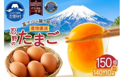 【2月配送分】富士山の麓で育った産地直送 ”忍野の卵”※卵140個+割れ保証10個 計150個