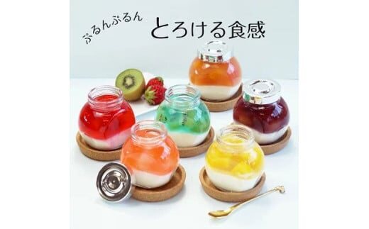 牛乳プリンの上に、個性豊かな6種類のフルーツが入ったフルーツゼリーです。