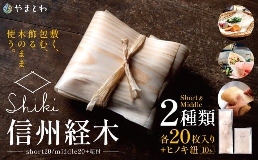 信州経木Shiki(short20/middle20+紐付)|信州 伊那 包装材 お弁当 弁当 保存 包み ラッピング 森 森林 木 アカマツ 経木 伝統 料理【007-07】