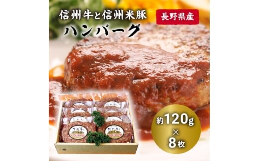 信州牛と信州米豚 ハンバーグ(約120g×8枚)【1291109】
