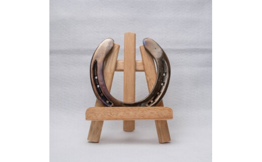 この蹄鉄は実際に蓼科の乗馬クラブで使用されていた古い蹄鉄のサビを綺麗に落とした後、塗装では無く鉄本来が持つ性質を利用して焼き入れ処理し、七色の不思議な色を出しています。