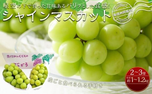 2~3房(約1.0~1.2kg) 【原材料名】 ブドウシャインマスカット(国産長野県阿智村) |