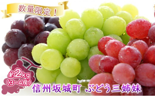 [№5729-0422]数量限定!「ぶどう三姉妹」3種 2kg(3~4房) ナガノパープル・ シャインマスカット・ クイーンルージュ🄬