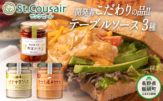 サンクゼール こだわり テーブルソース 【3種】タコス風チリマヨ & 野菜ソース & ポテサラソース 12月上旬頃から発送 沖縄県への配送不可 長野県 飯綱町 [1456]
