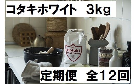≪令和7年産先行予約≫希少米コタキホワイト3kg毎月お届け(全12回)