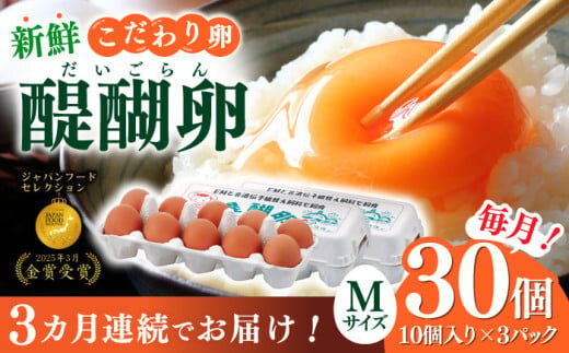 【3回定期便】岐阜産こだわり産みたて卵 30個入りMサイズ【醍醐卵】 産地直送 新鮮 たまご 岐阜市 / 棚橋ファーム [ANAZ003]
