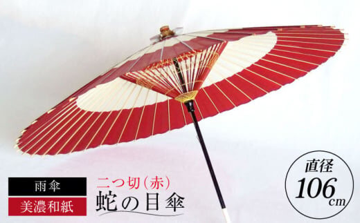 【岐阜和傘】蛇の目傘 二つ切(赤)【機械漉き】【美濃和紙】 かさ 雨傘 44本骨 岐阜市/マルト 藤沢商店 [ANBX007]
