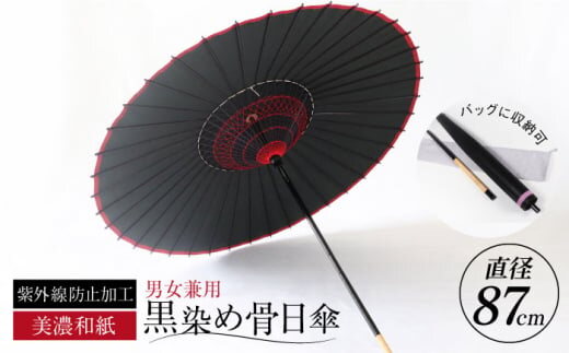 【岐阜和傘】日傘 黒染め骨日傘 軒赤【機械漉き】【美濃和紙】 かさ ブラック 40本骨 岐阜市/マルト 藤沢商店 [ANBX002]