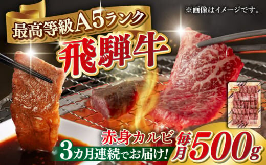 【3回定期便】A5等級 飛騨牛 赤身カルビ 焼肉用 500g BBQ 焼き肉 A5ランク 岐阜市 / 三心 [ANGY008]
