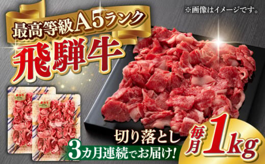 【3回定期便】A5等級 飛騨牛 切り落とし 1kg(500g×2パック) ブランド牛 最高級 A5ランク 岐阜市 / 三心 [ANGY016]