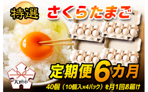 【定期便 6カ月】 特選 さくらたまご ☆40個(10個入×4パック)を月1回お届け☆☆