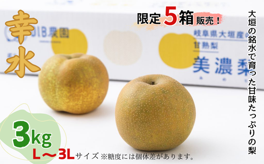大垣の銘水で育った甘味たっぷりの梨(幸水)3kg前後【8月中旬から9月上旬ごろに発送予定】