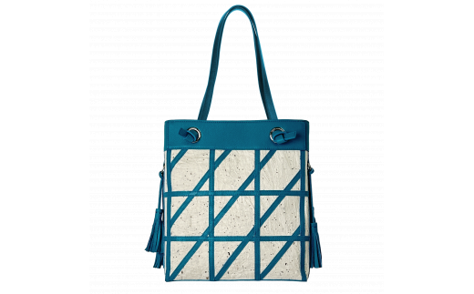 【和然WASHIKA】幾何学模様ショルダーバッグ 美濃の手漉き和紙×本革 カラー:ターコイズブルー