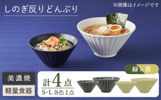 \レビューキャンペーン実施中!!/【美濃焼】しのぎ反りどんぶり S/Lサイズ ペア 4点セット 緑×黄【井澤コーポレーション】丼ぶり 軽量 [TBP039]