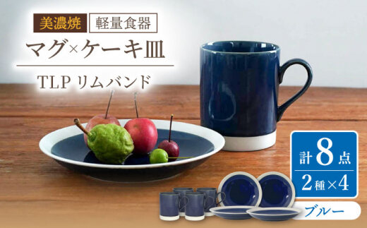 \レビューキャンペーン実施中!!/【美濃焼】[軽量食器] TLPリムバンド ブルー マグ×4個 ケーキ皿×4枚 8個セット 【井澤コーポレーション】 [TBP102]