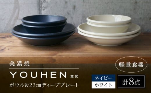 \レビューキャンペーン実施中!!/【美濃焼】[軽量食器] YOUHEN ボウル & 22cm ディーププレート×4 8点セット (ホワイト/ネイビー) 多治見市 / 井澤コーポレーション 食器 プレート 皿 [TBP230]