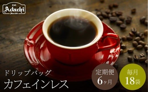 【定期便】関市 コーヒー ドリップバッグコーヒー定期便 カフェインレス 18袋 × 6ヶ月/カフェアダチ 珈琲 コーヒー 自家焙煎 COFFEE カフェインレス 焙煎 ドリップ
