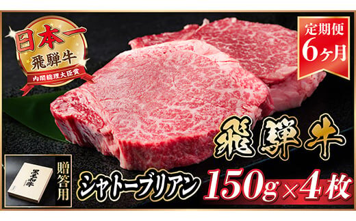 <毎月定期便>飛騨牛 シャトーブリアン600g(150g×4枚)<冷蔵便>贈答用 お歳暮 全6回【4053251】
