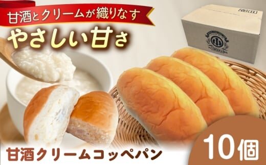 出来立てを超えた甘酒クリームコッペパン(10個入) / コッペパン 甘酒 クリーム 甘酒クリーム スイーツ おやつ 手作り お取り寄せ 送料無料 贈答 ギフト プレゼント / 恵那市 / マルコ醸造 [AUCT004]